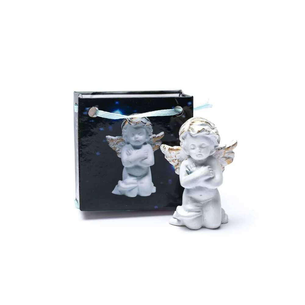 Ängelstatyett av täljsten, naturlig, 12,5 cm