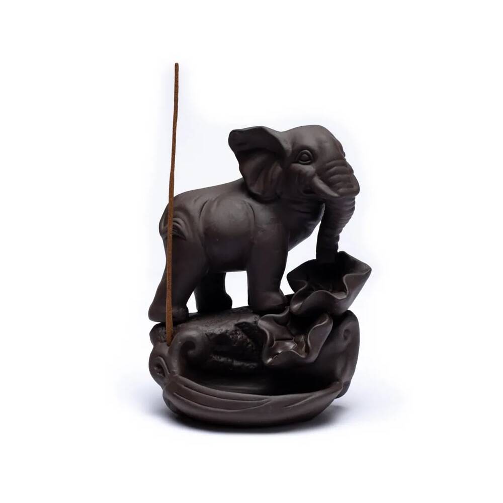 Rökelsehållare för backflow rökelsekoner Elefant. Röken stiger inte uppåt, utan rinner neråt, likt ett vattenfall. Skapar en vacker, fridfull effekt.