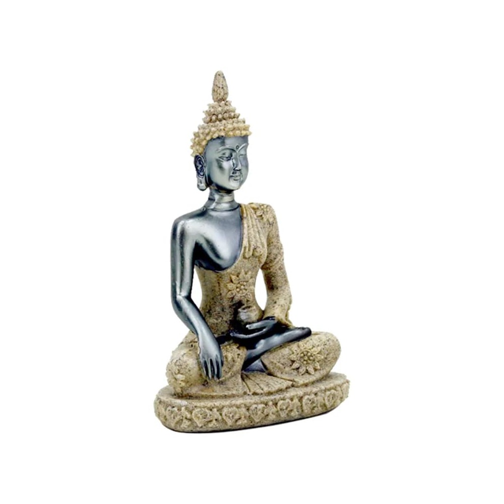 Silverfärgad statyett med sand – Thai Buddha