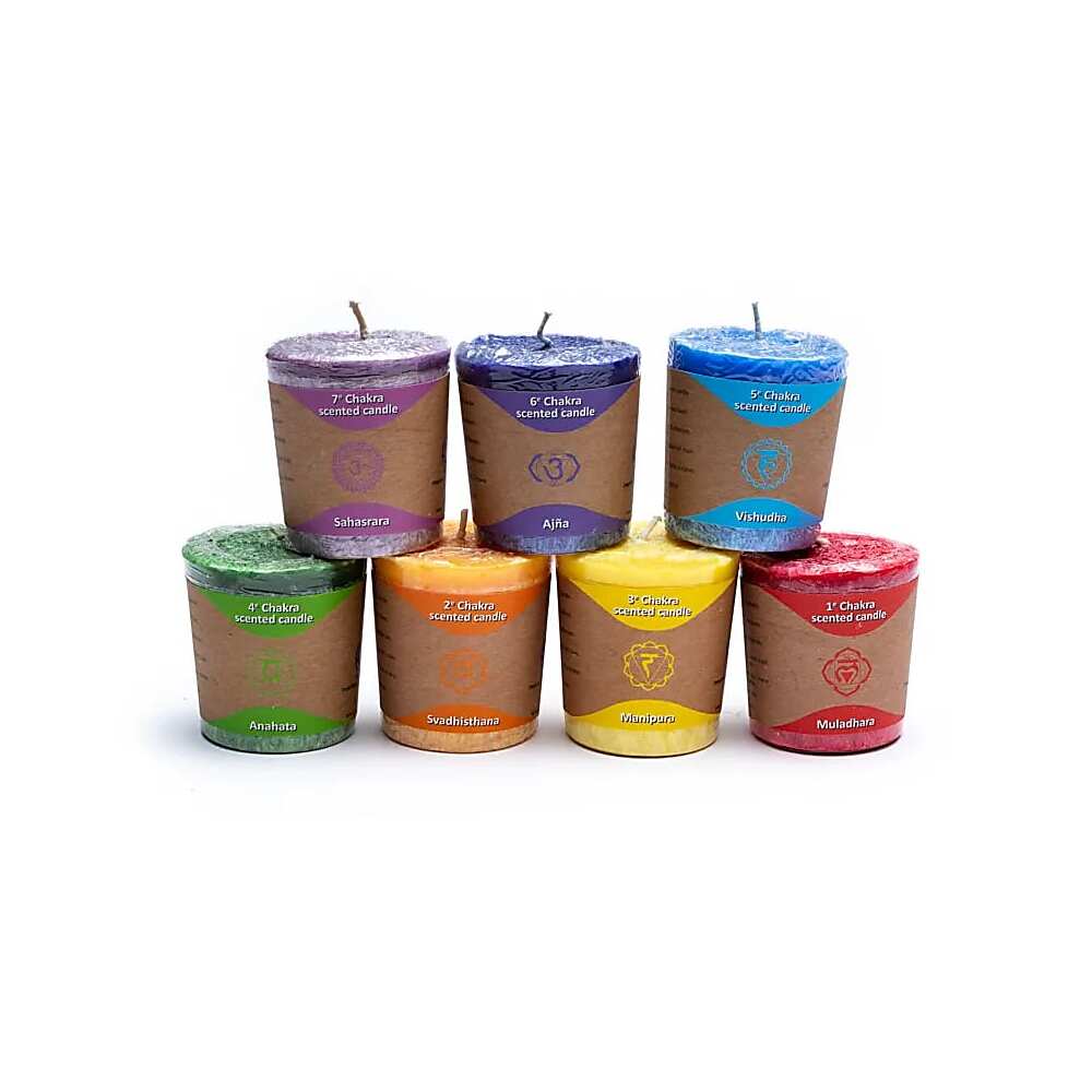 Chakras votivljus aromatiska ljus 7 x i presentask, 4,5x4 cm