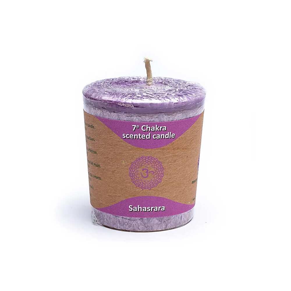 • Doftljus med rapsvax 7:e chakrat, ±260 g; 6x6x6 cm