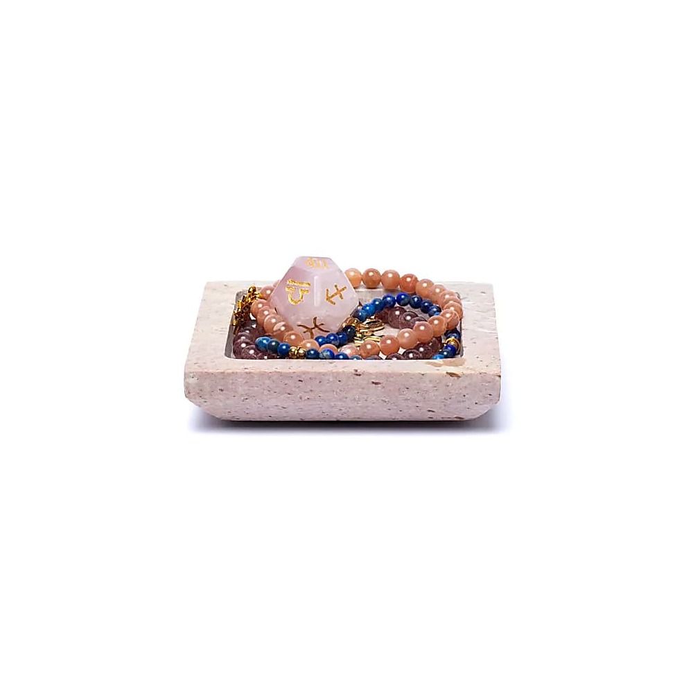 En stadig fyrkantig täljstensbricka som kan användas som ljushållare för bl.a pyramidljus eller annan förvaring.