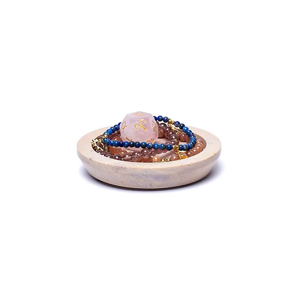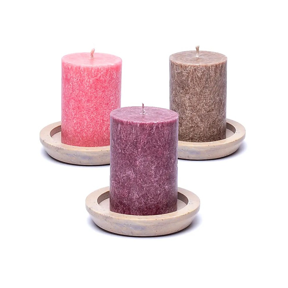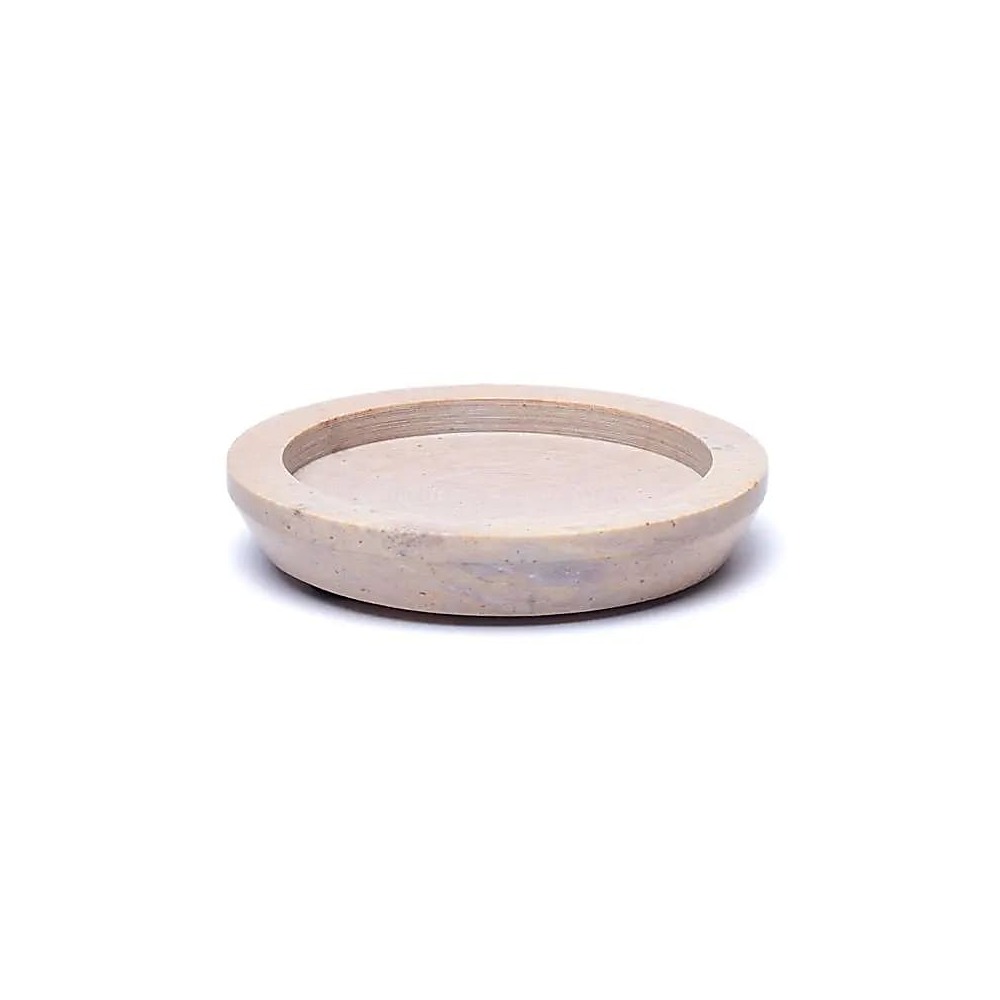 En stadig rund täljstensbricka som kan användas som ljushållare för bl.a pyramidljus eller annan förvaring.