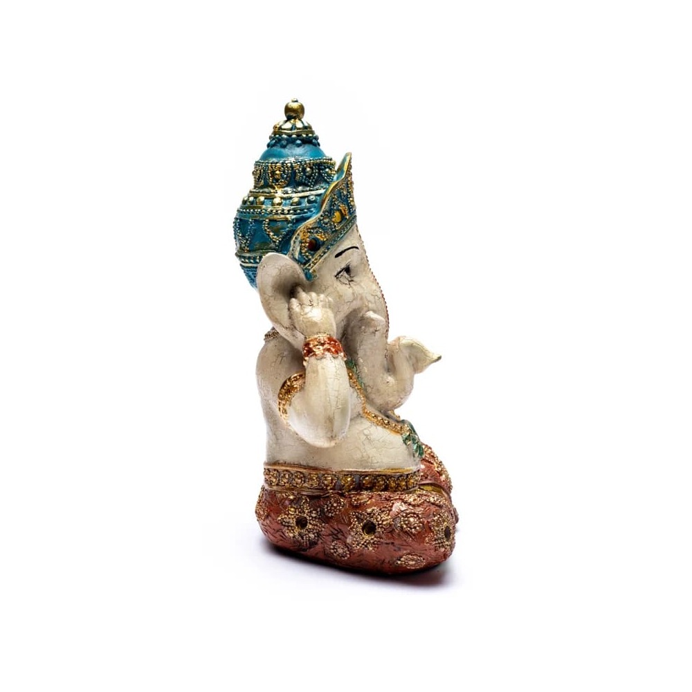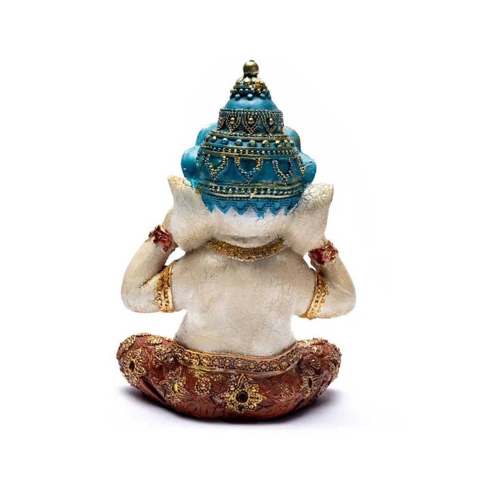 Ganesh-varianten av de berömda tre vise aporna, som härstammar från Japan men också har funnit sin väg in i hinduiska och buddhistiska kulturer. De påminner oss om att leva gott genom att använda våra tankar, tal och handlingar på ett positivt sätt.