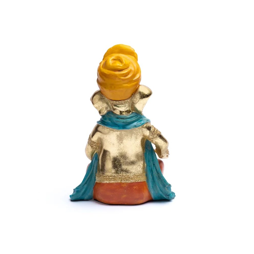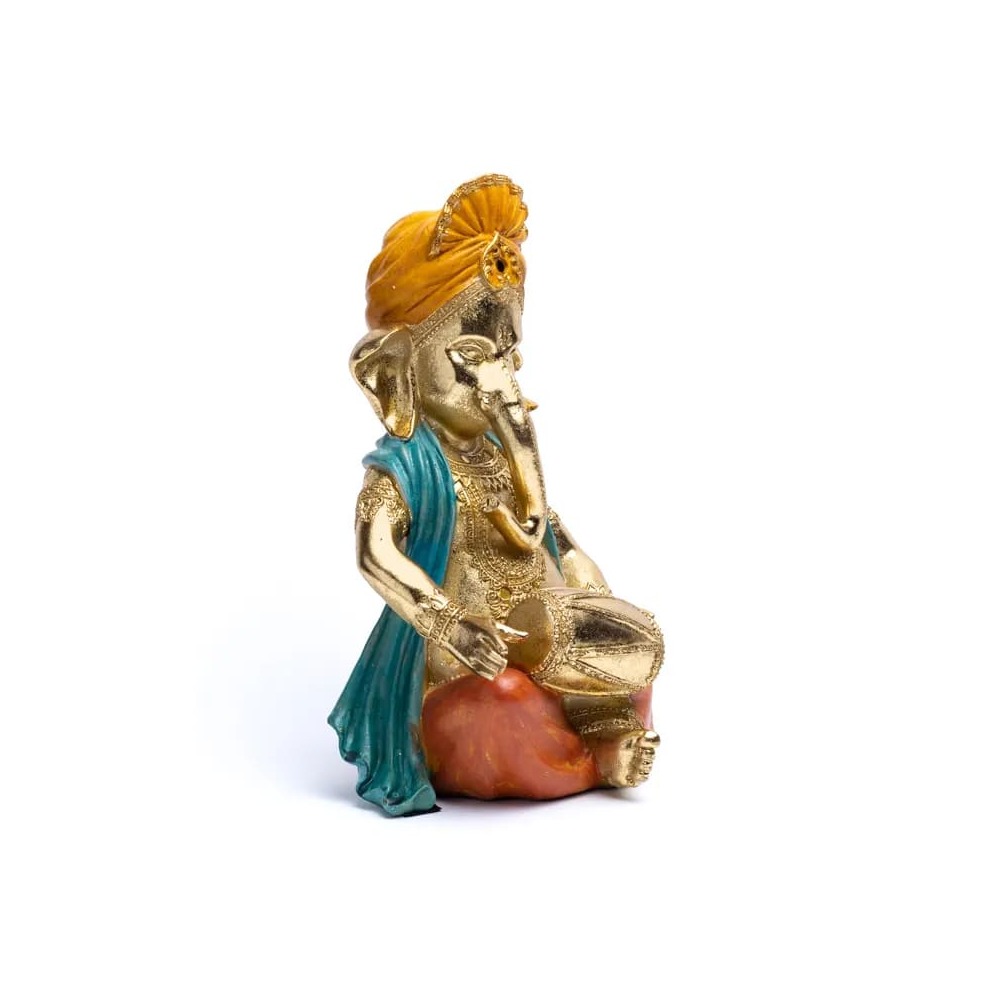 Färgglad statyett av Lord Ganesh som spelar handtrumma.