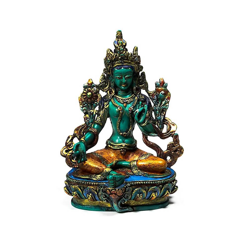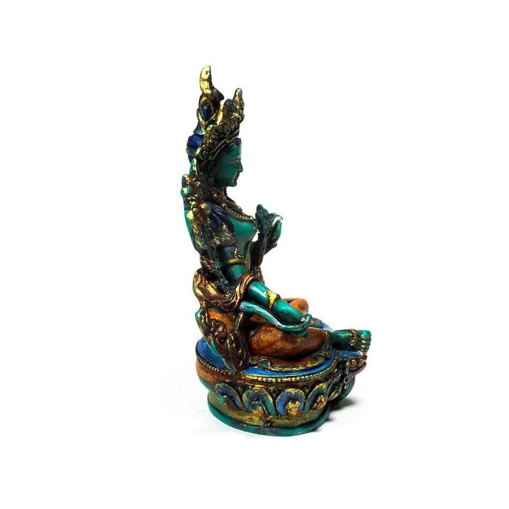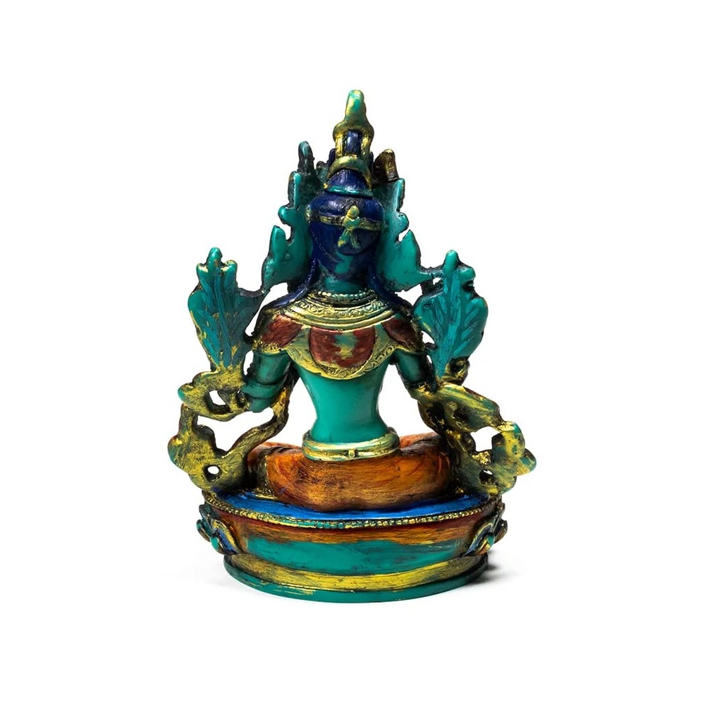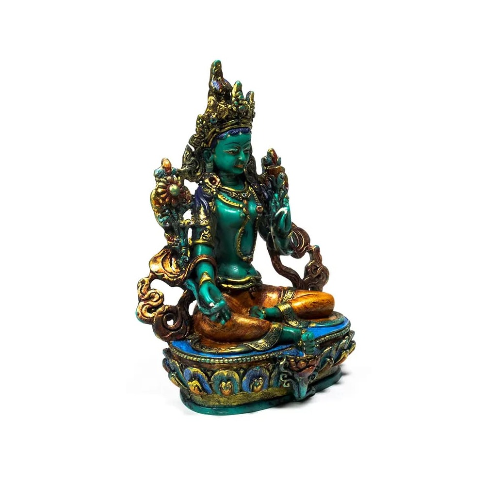 Gröna Tara är en feminin Buddha som hjälper alla att ta sig över lidandets hav. Gröna Tara avbildas som en ung flicka eller kvinna, lekfull och dynamisk. Hon sitter i en avslappnad semi-lotusställning med högerbenet utsträckt, redo för handling, för att hjälpa andra. Lotusen och mudran i hennes vänstra hand symboliserar renhet och kraft. Hennes högra hand uttrycker frihet och medkänsla.