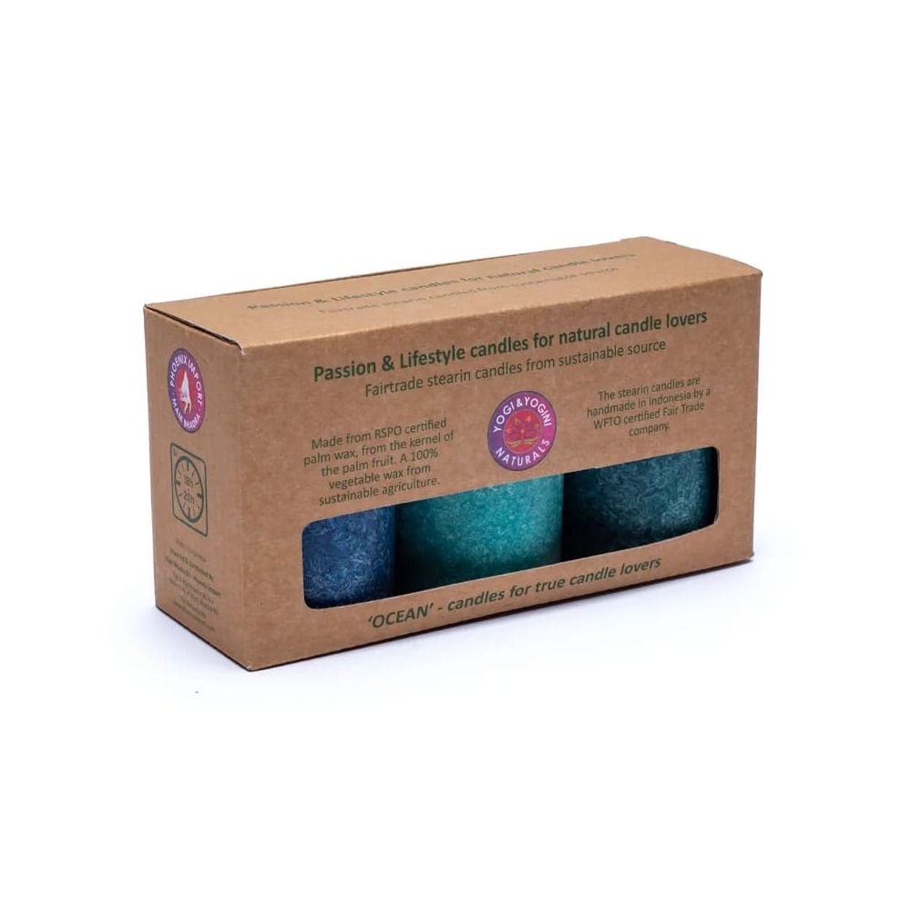 Hållbara stearinljus x 3 Hav, 8x5,5 cm