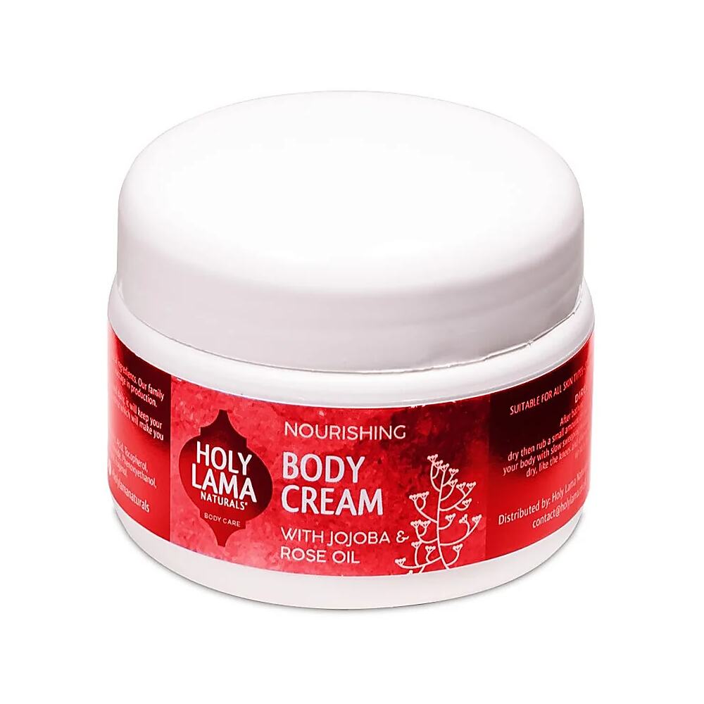 Holy Lama Naturals Body Cream är en rik och närande kräm. Använd den dagligen för att hålla din kropp smidig och återfuktad. Den har en härlig, uppfriskande doft som får dig att känna dig som sommar året runt. En antydan av ros varar hela dagen!