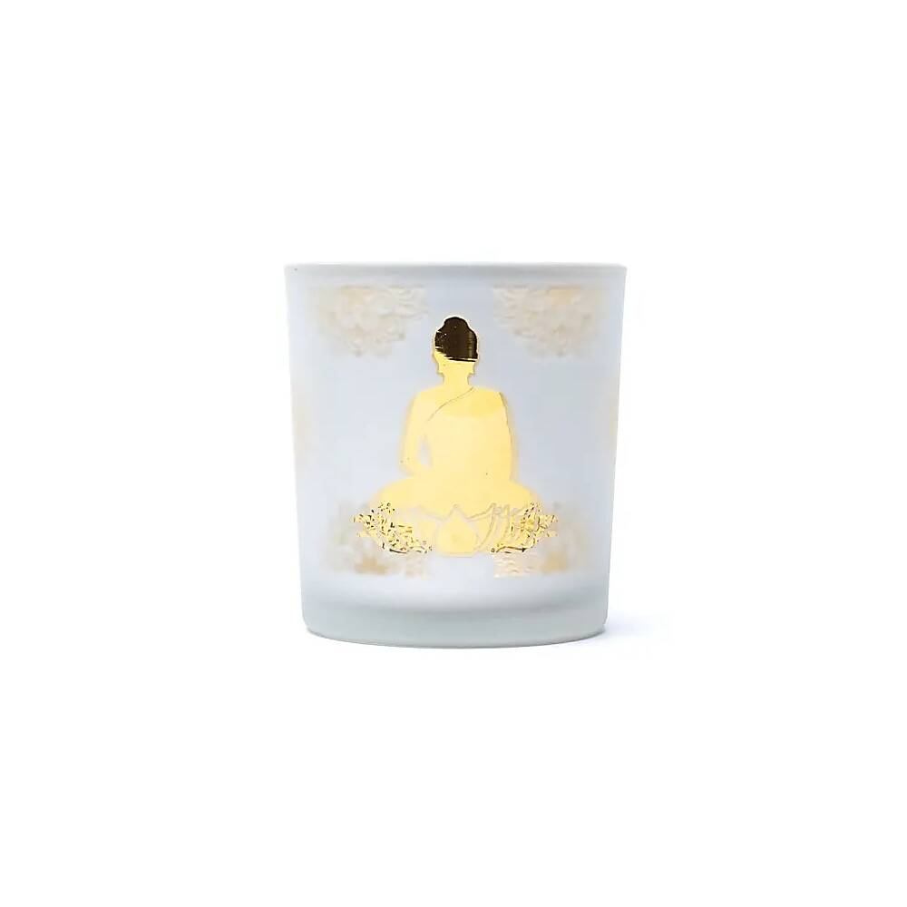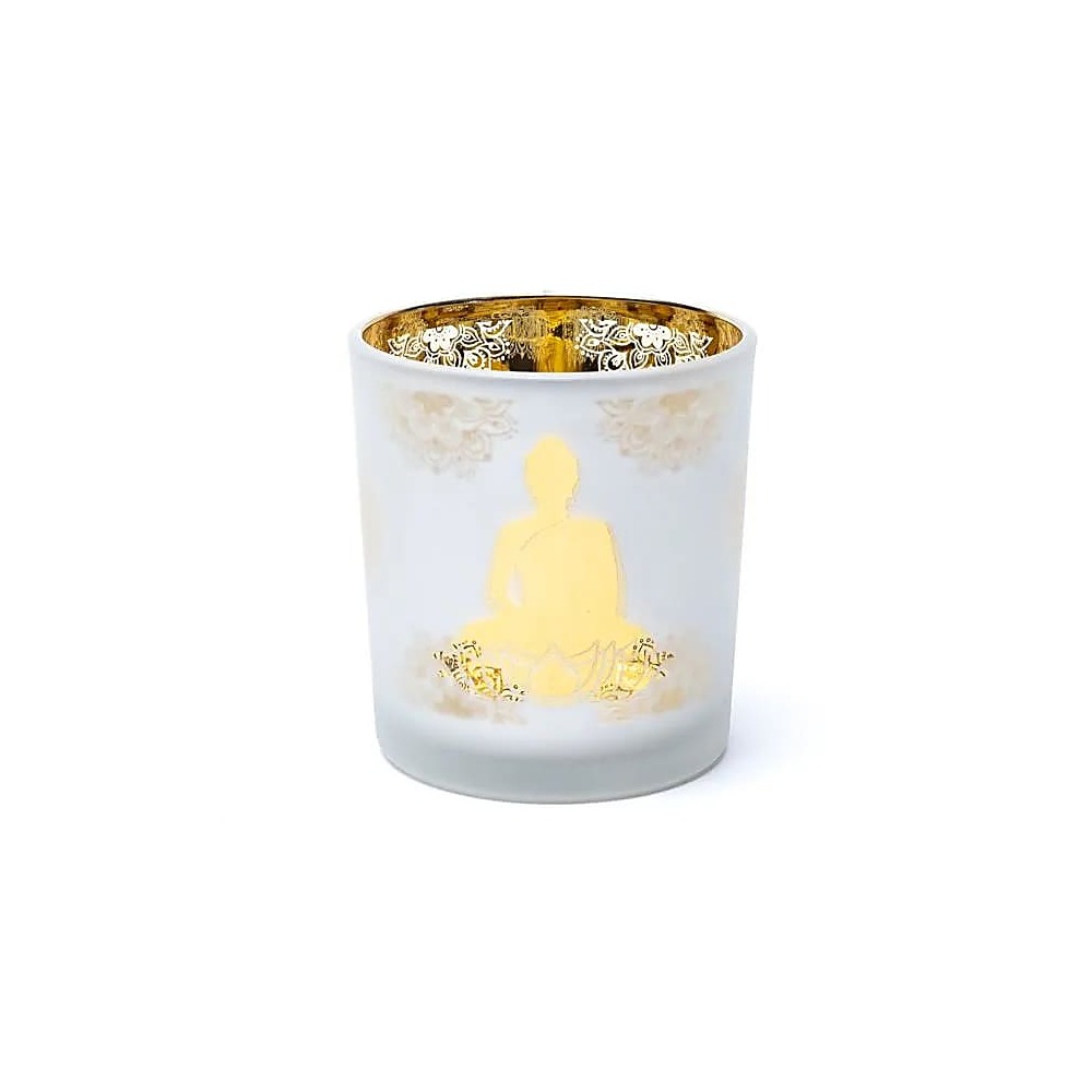 Ljuslykta frostad/metallisk Buddha, 7,3x8 cm