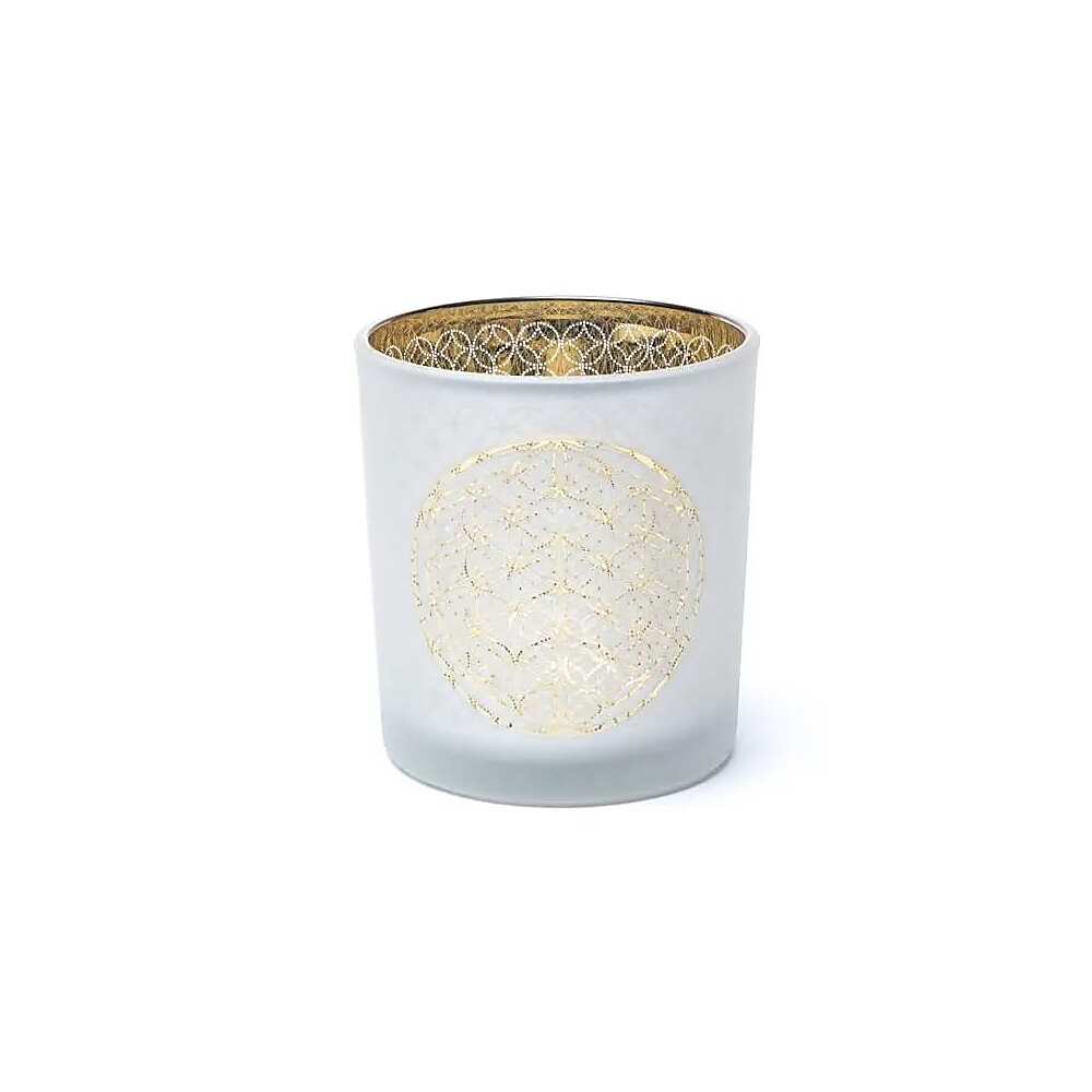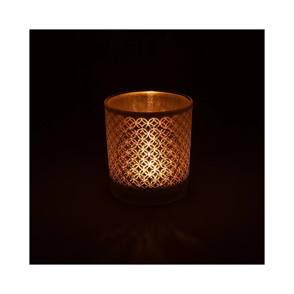 Ljuslykta frostad/metallisk Livets Blomma, 7,3x8 cm