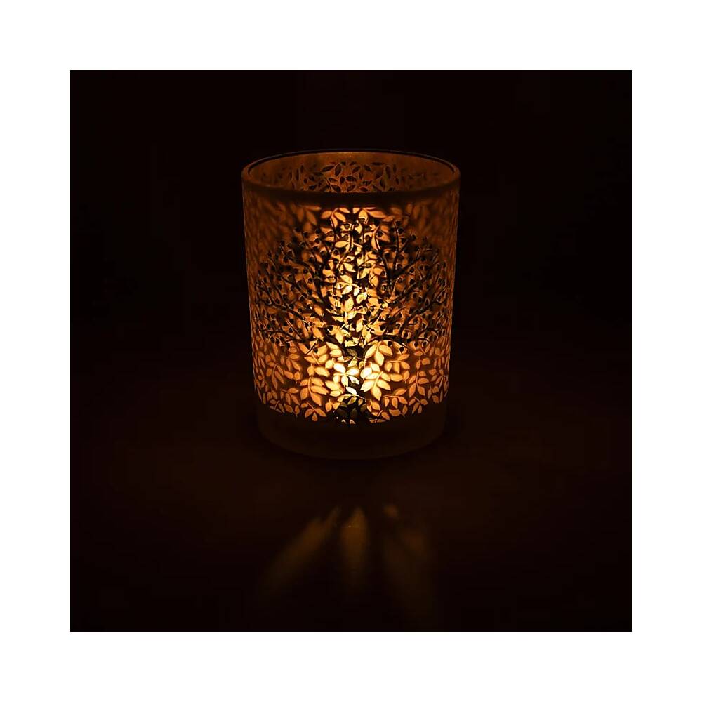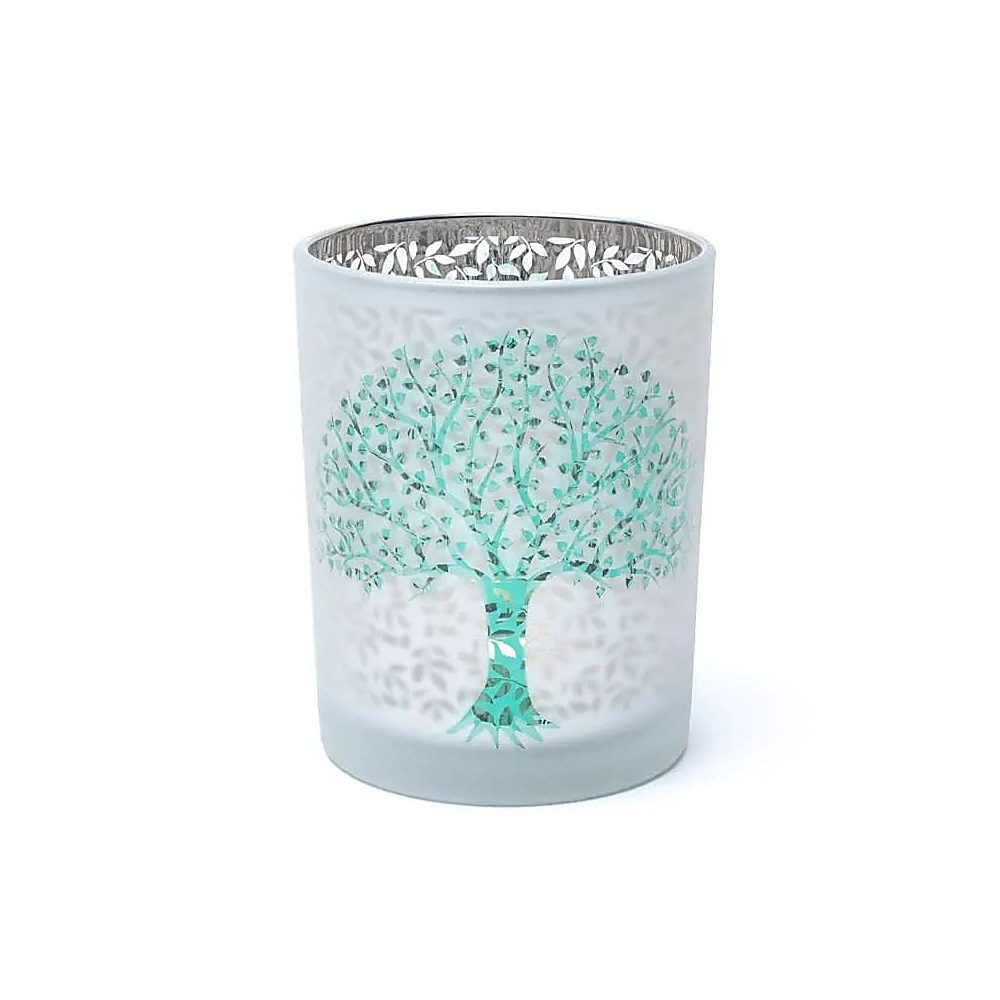 Ljuslykta frostad/metallisk Livets Träd, 10x12,5 cm