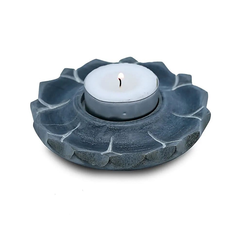 Tillverkad av polerad täljsten, lotusformad. Lämplig för att bränna både ljus och rökelse.