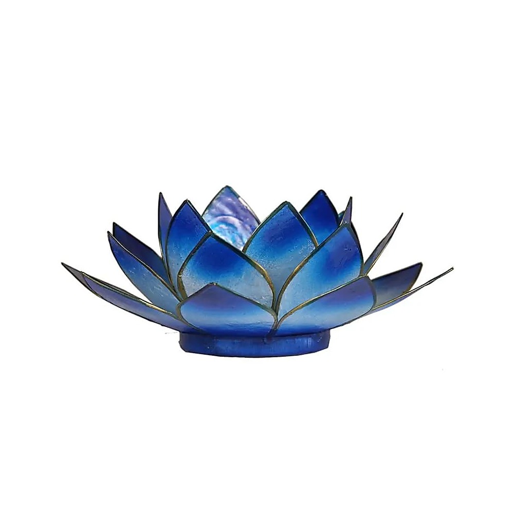 • Lotusblomma för värmeljus, chakra 5 blå silverkant, 13,5 cm