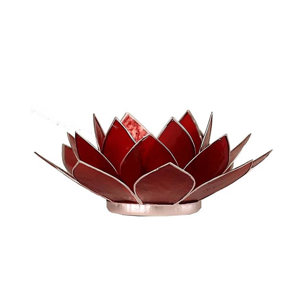 Lotusblomma för värmeljus, chakra 1 röd silverkant, 13,5 cm