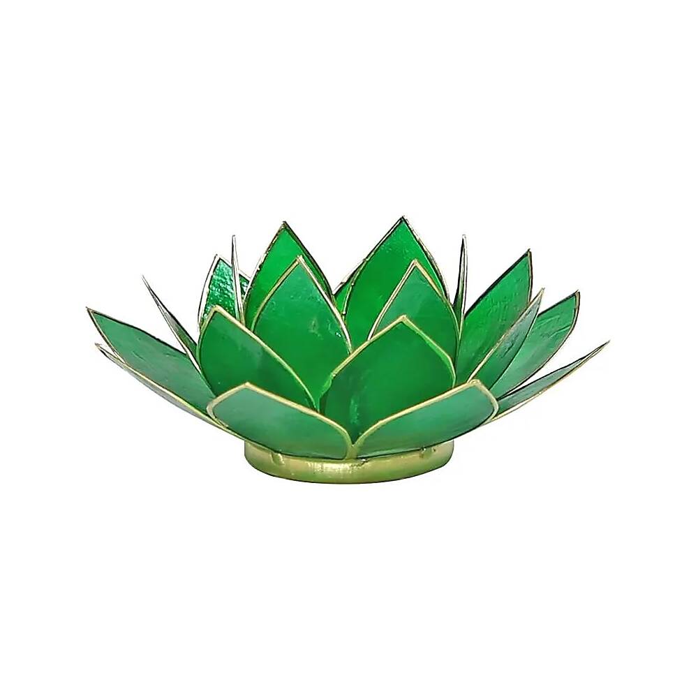 Lotusblomma för värmeljus, chakra 4 grön guldkant, 13,5 cm