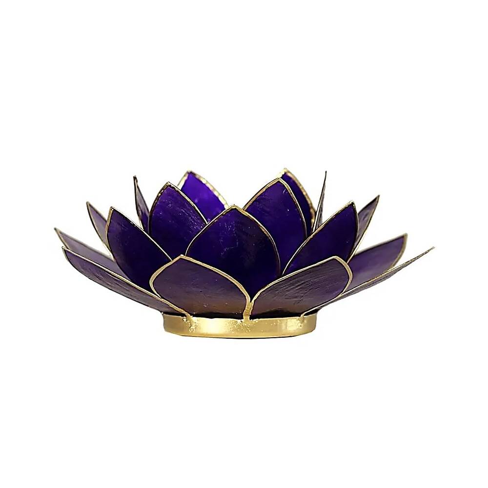 Lotusblomma för värmeljus, chakra 7 violett guldkant, 13,5 cm
