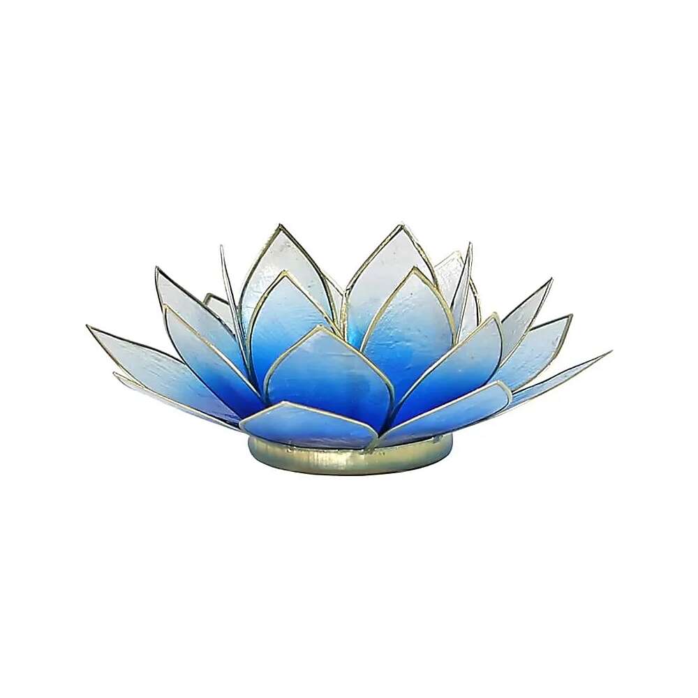 Lotusblomma för värmeljus, ljusblå/vit guldkant, 13,5 cm