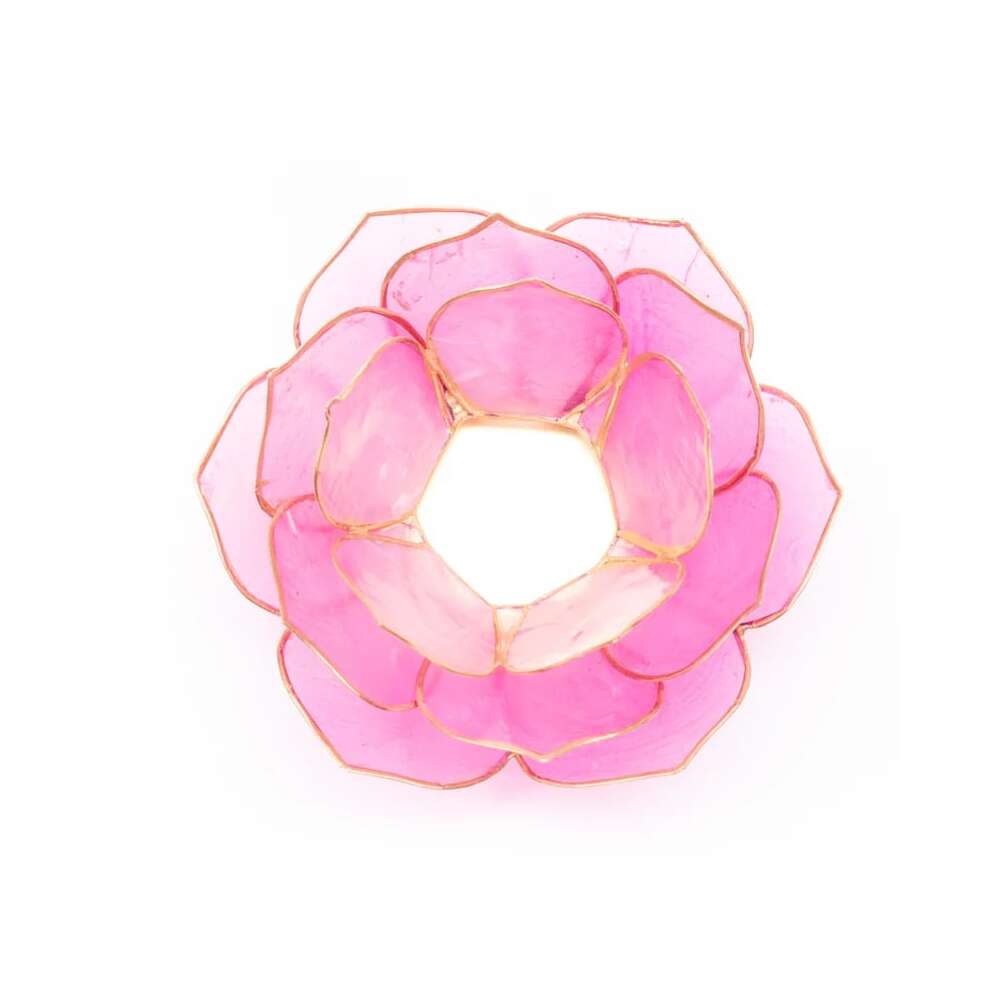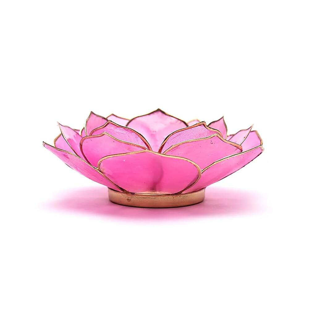 Lotusljusstake med lotusformade blad, tillverkad av capizskal.
