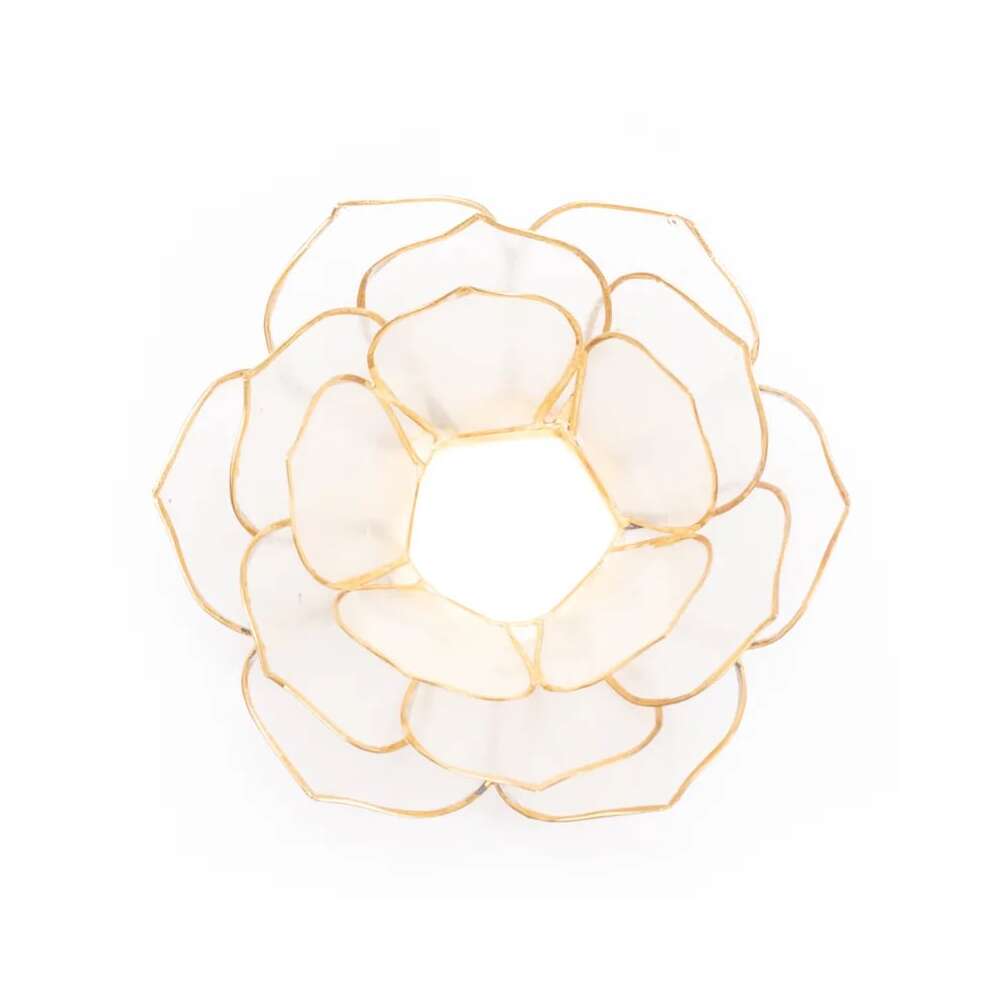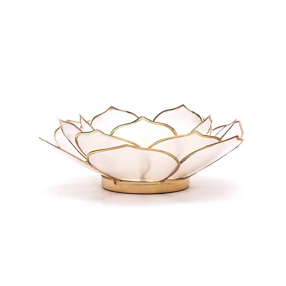 Lotusljusstake med lotusformade blad, tillverkad av capizskal.