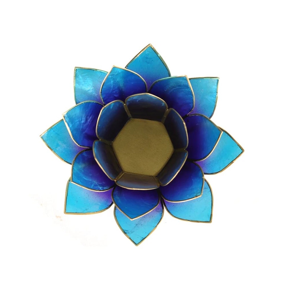 • Lotusblomma för värmeljus, ljusblå/vit guldkant, 13,5 cm