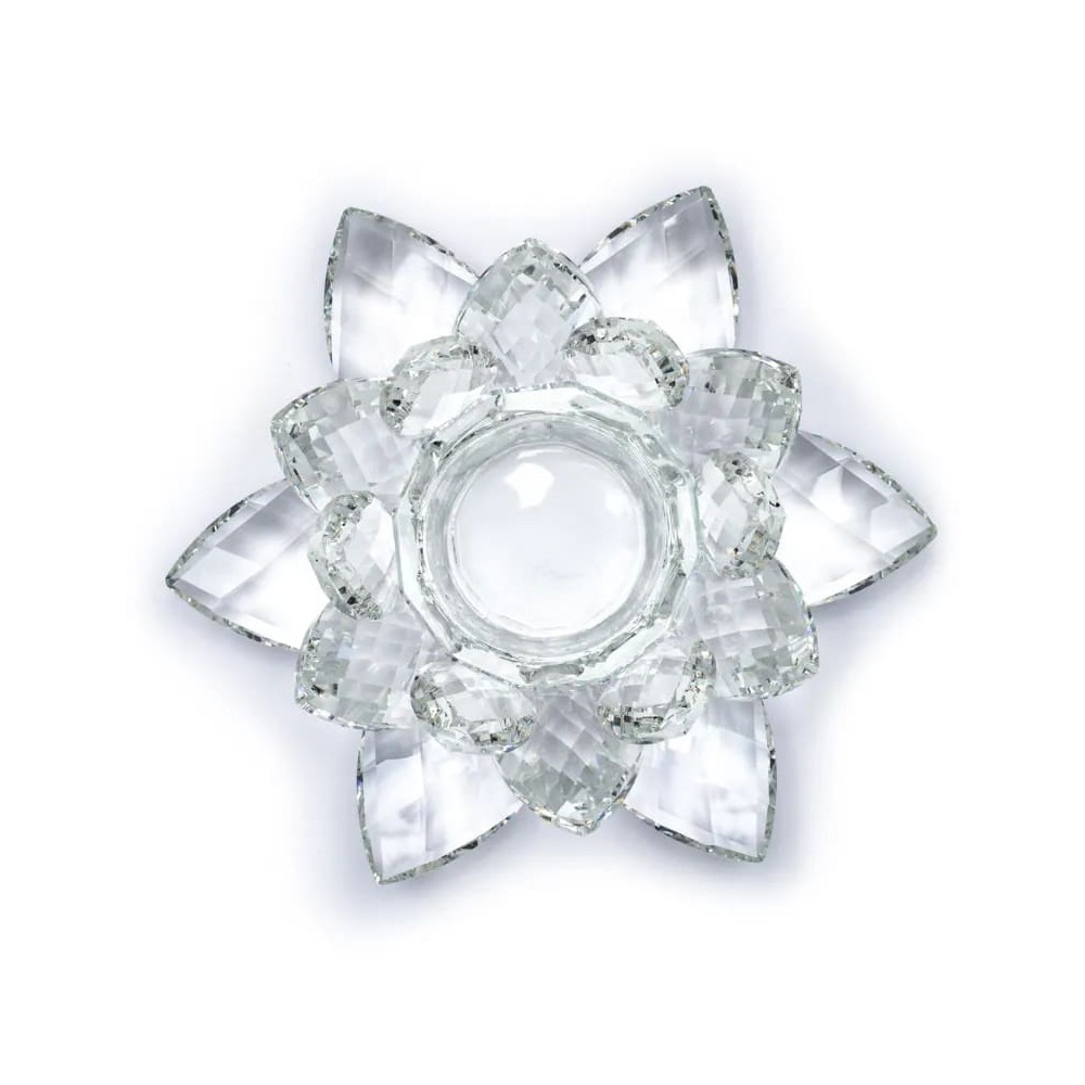 Elegant lotusformad ljushållare tillverkad av kristallglas.