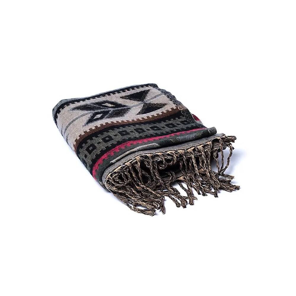 Lyxig meditationssjal med ett elegant bohemiskt vävt mönster i jordnära toner.