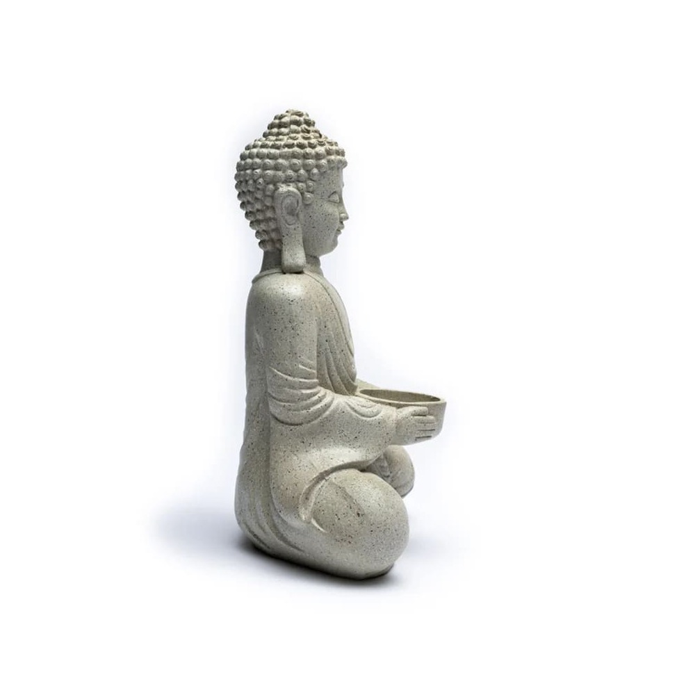 Mediterande Buddha med ljushållare grå färg, 550 g; 27 cm