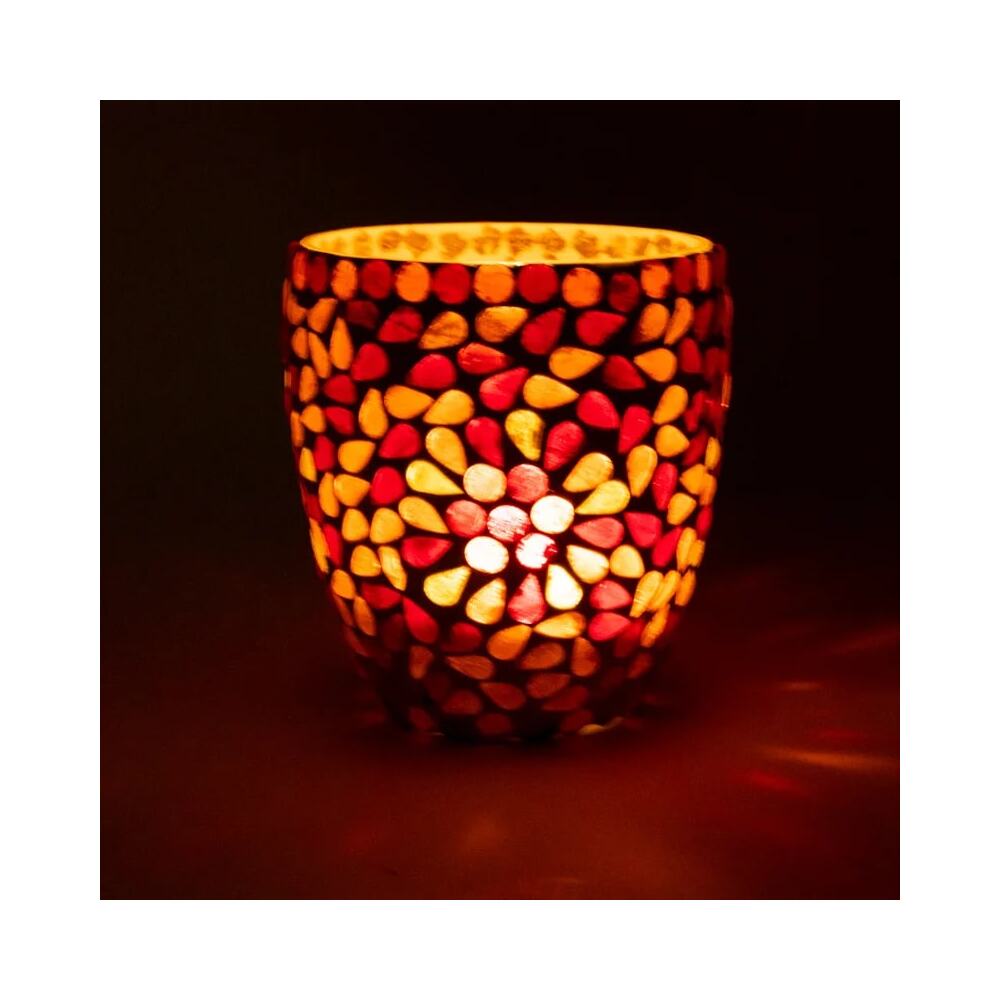Mosaik värmeljushållare röd/gul, 10 cm - Bild 5
