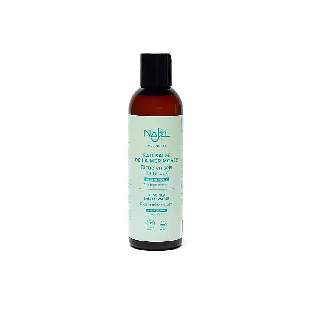 NAJEL Dödahavsvatten består av 21 mineraler, varav magnesium, kalium och kalcium finns i de största mängderna. Detta vatten är välkänt för sina lugnande, regenererande och renande egenskaper och spelar en viktig roll i kroppsvård. Det hjälper också till att lindra hudproblem.