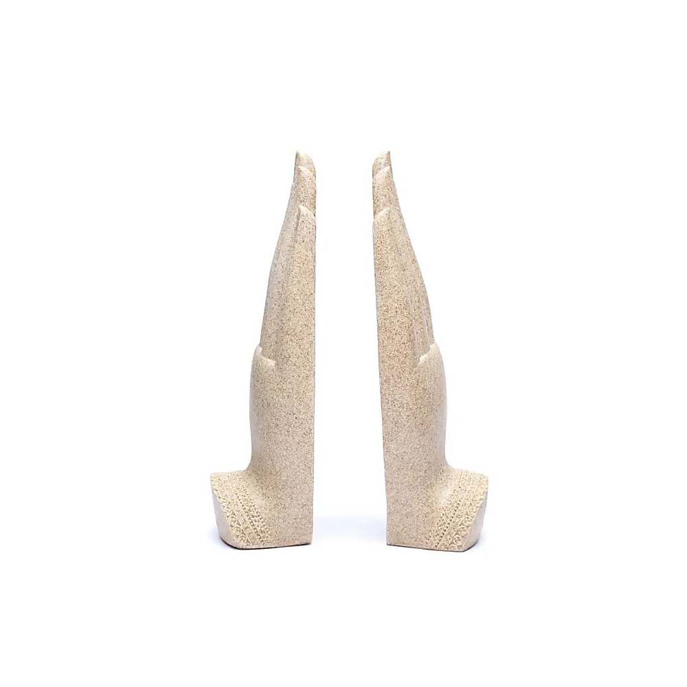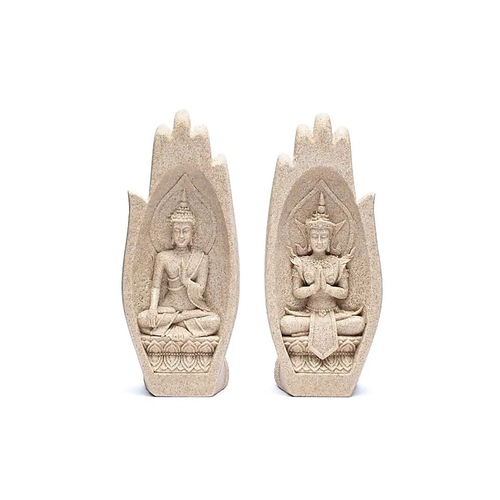 Namaste Mudra-händer med Buddhor i sandfärg, 11x21cm