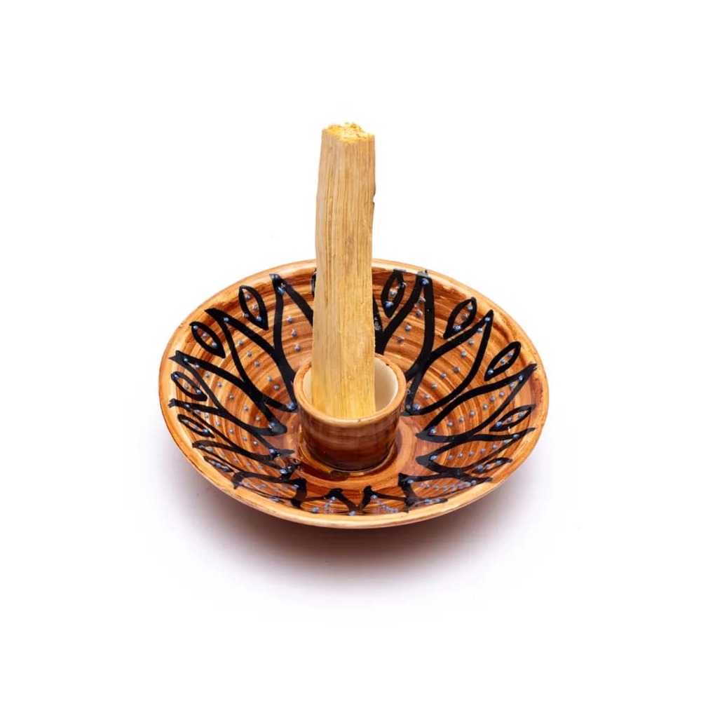 Rökelsehållare, speciellt utformad för att bränna palo santo-stickor säkert.