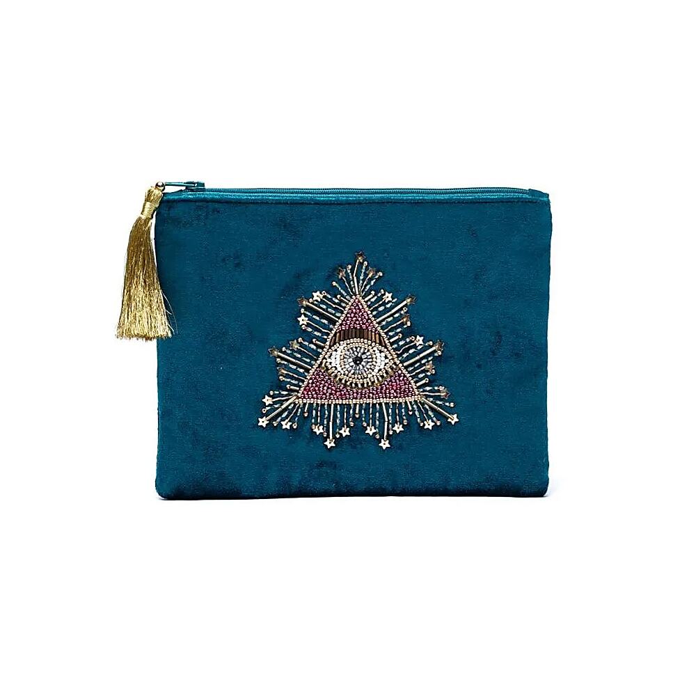 Petrolfärgad sammetspåse med dragkedja, tarotöga, 20x15 cm