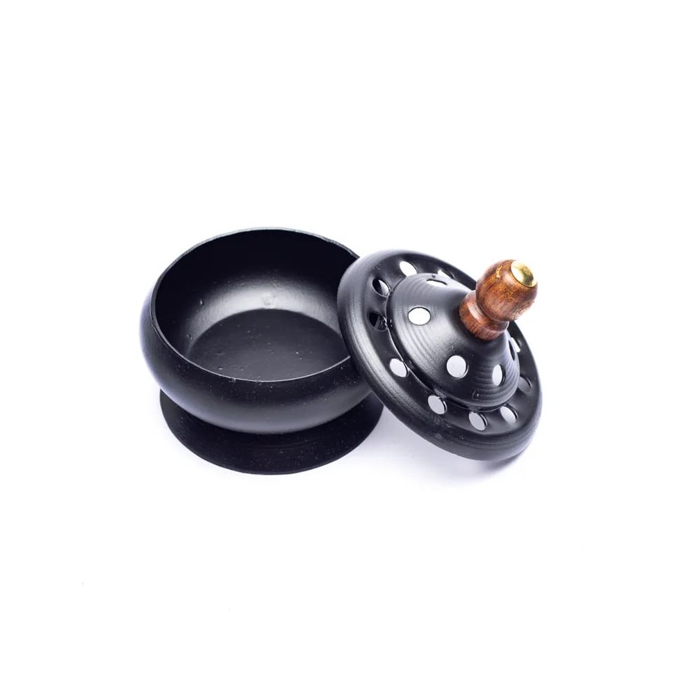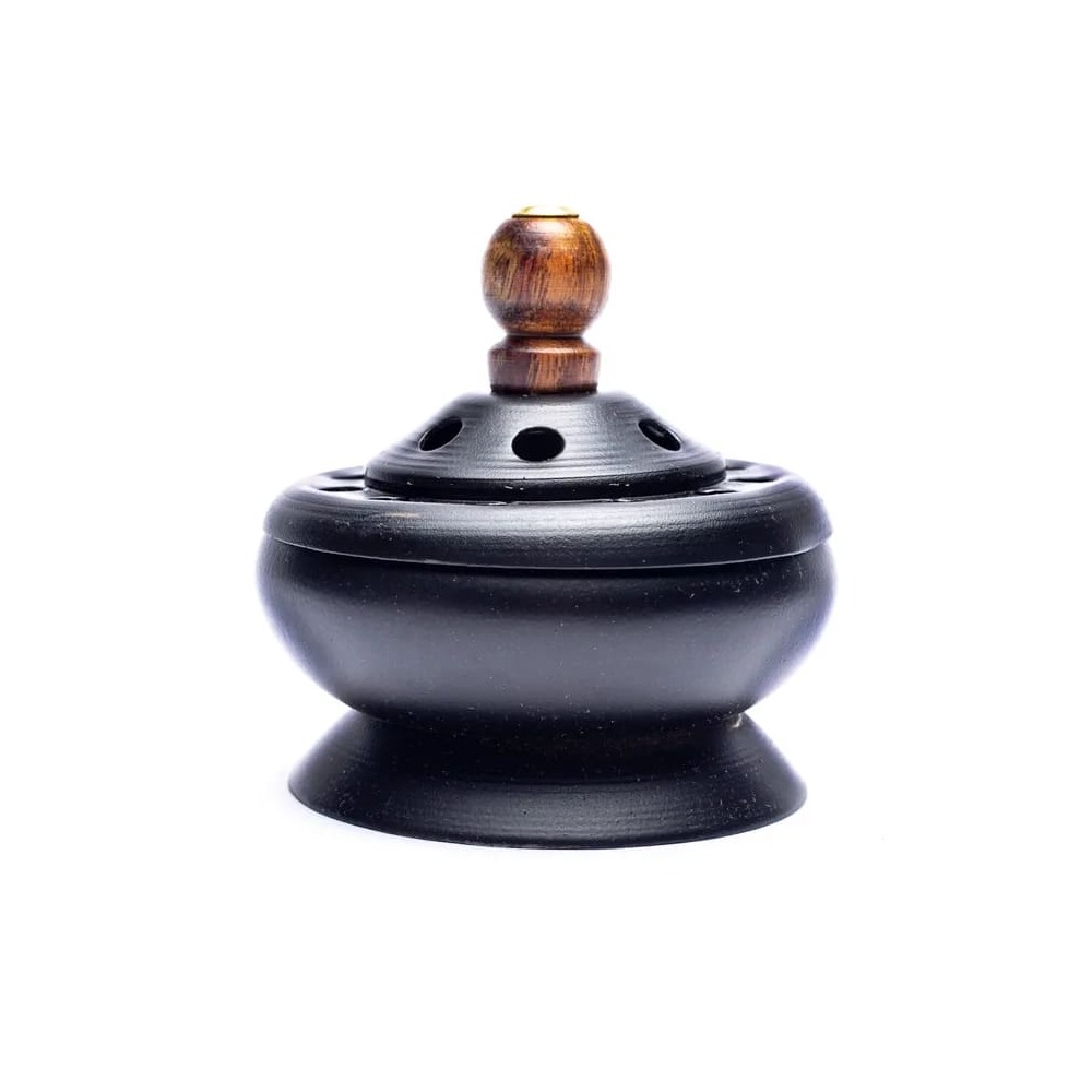 Rökelsebrännare med lock, för att säkert och enkelt bära runt i ett rum medan du smudgar vit salvia eller palo santo. Även lämplig för lös örtrökelse.