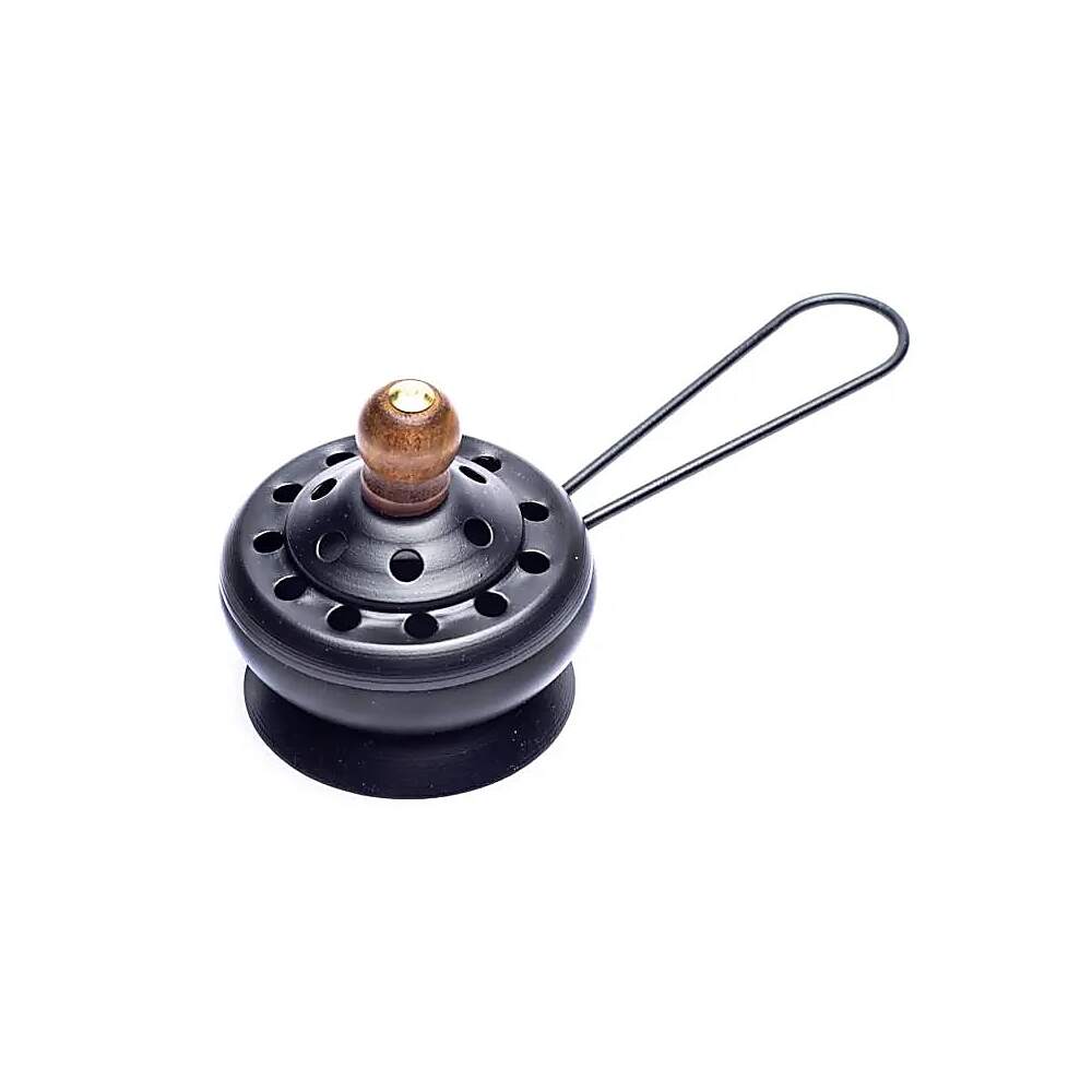 Rökelsebrännare med lock och svängbart handtag, för att säkert och enkelt bära runt i ett rum medan du smudgar vit salvia eller palo santo. Även lämplig för lös örtrökelse.