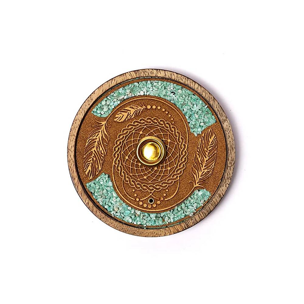 Hållare för pinnar och koner med med drömfångardekoration, berikad med amazonitstenar.
