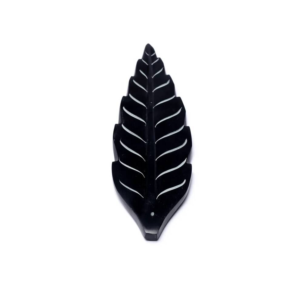 Rökelsehållare i bladform, svart täljsten, 25x8 cm
