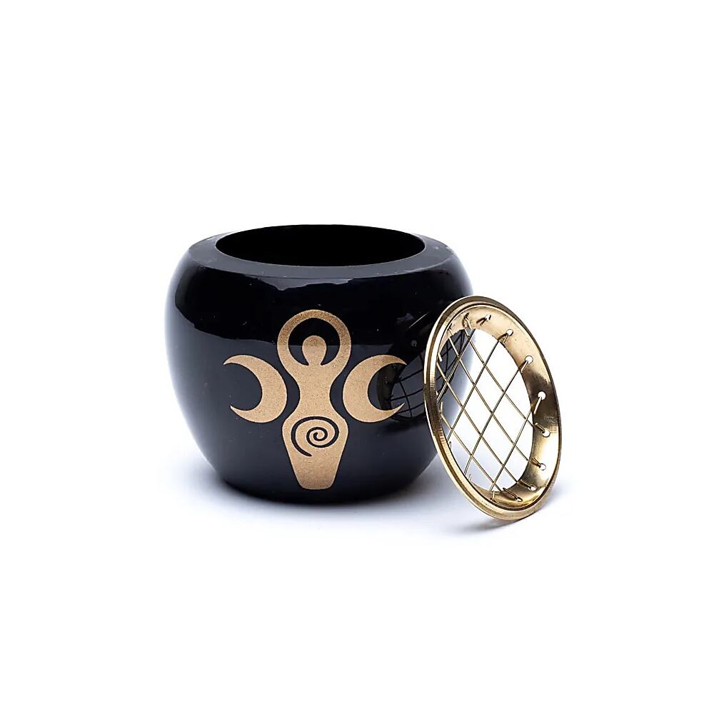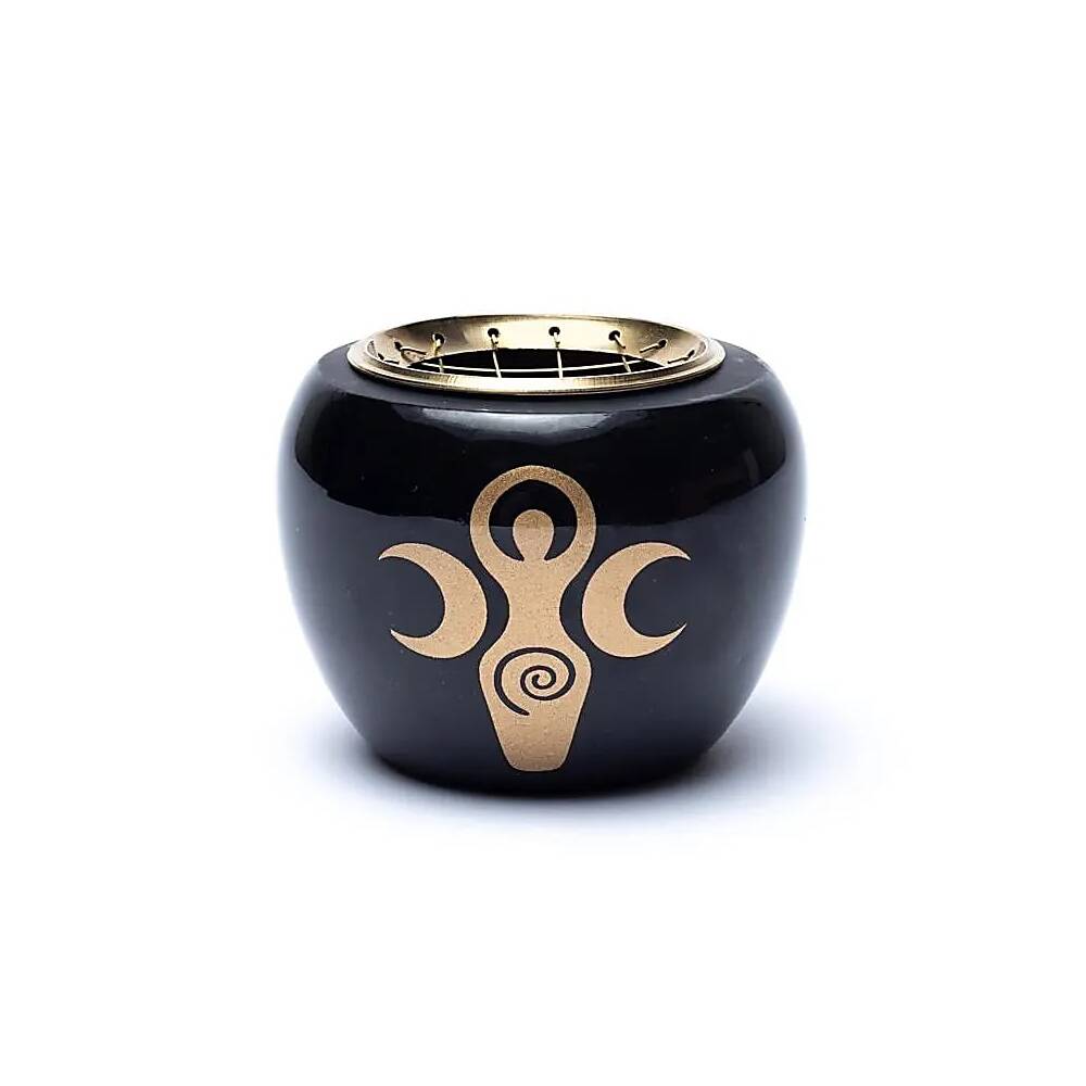 Rökelsekärl svart & guld gudinnasymbol, 9x7cm