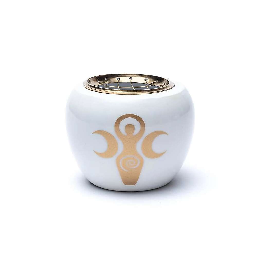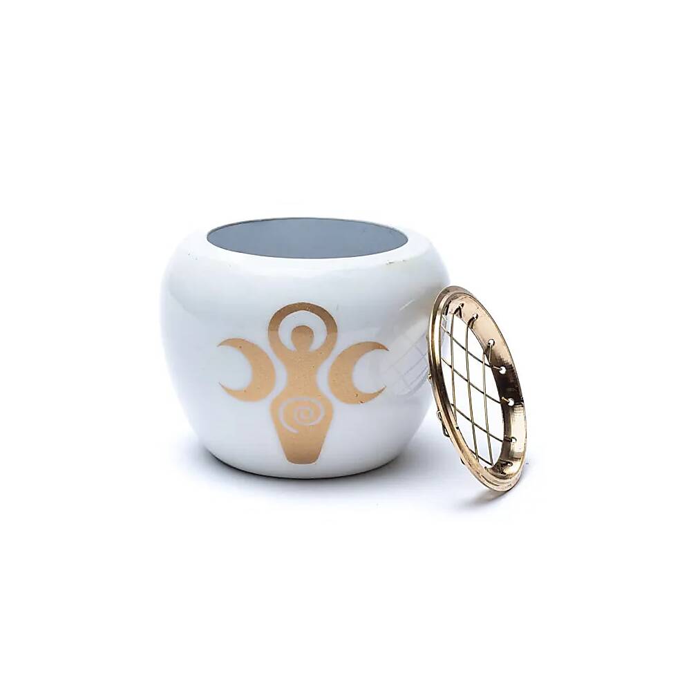 Rökelsekärl vit & guld gudinnasymbol, 9x7cm