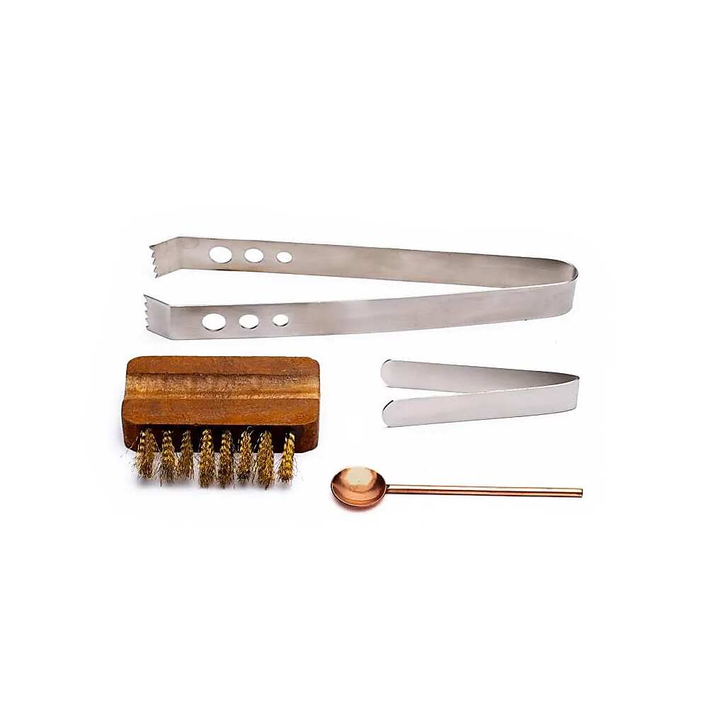 Tång: en för att hålla en koltablett när du tänder och placerar den i rökelsebrännaren; en annan för att hantera rökelsen och rökelsenätet.