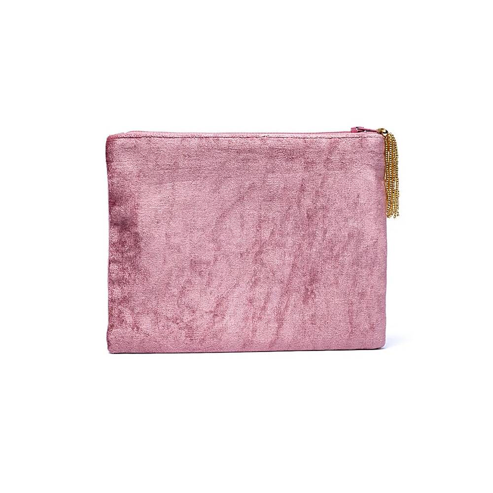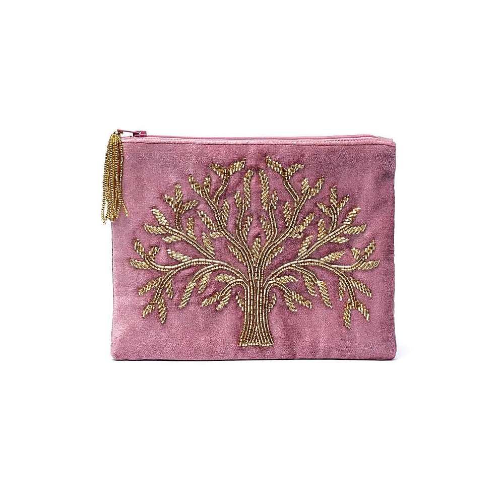 Rosa sammetspåse med dragkedja, Livets Träd, 20×15 cm