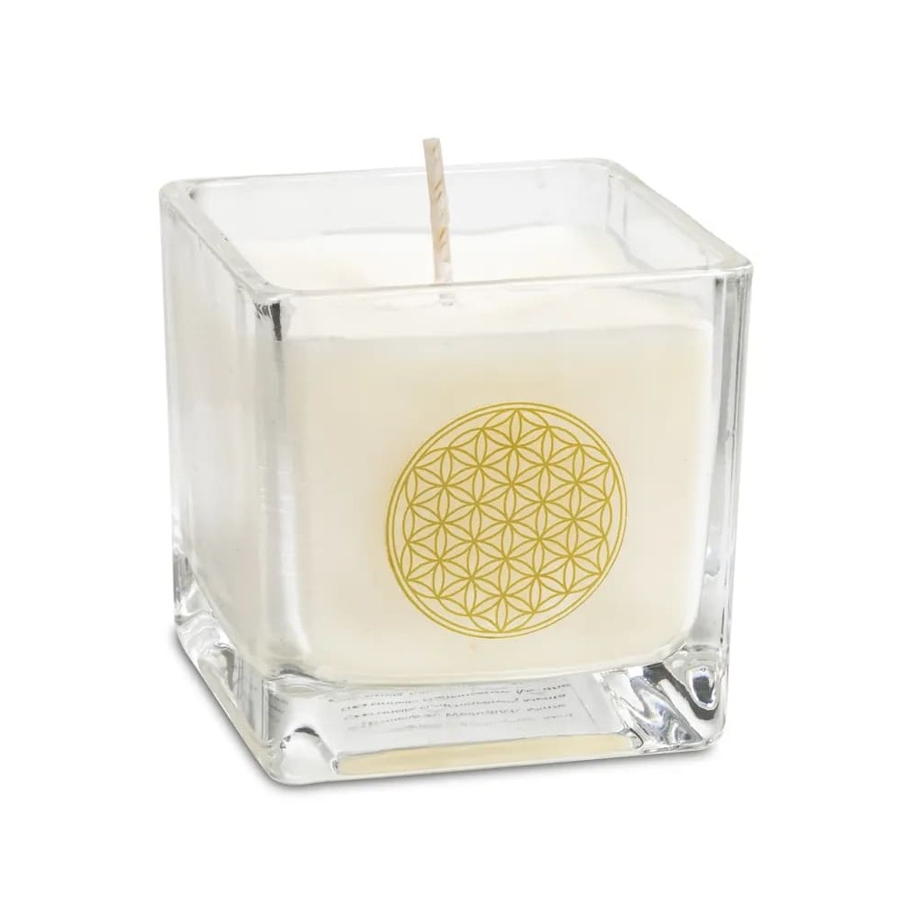 • Doftljus med rapsvax Aum, jasmin, mysk, ±260 g; 6x6x6 cm