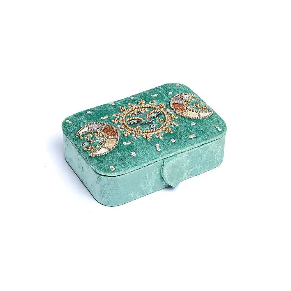 Smycken / Tarotskrin sammet mintgrön med månfaser, 11×15,5×5 cm