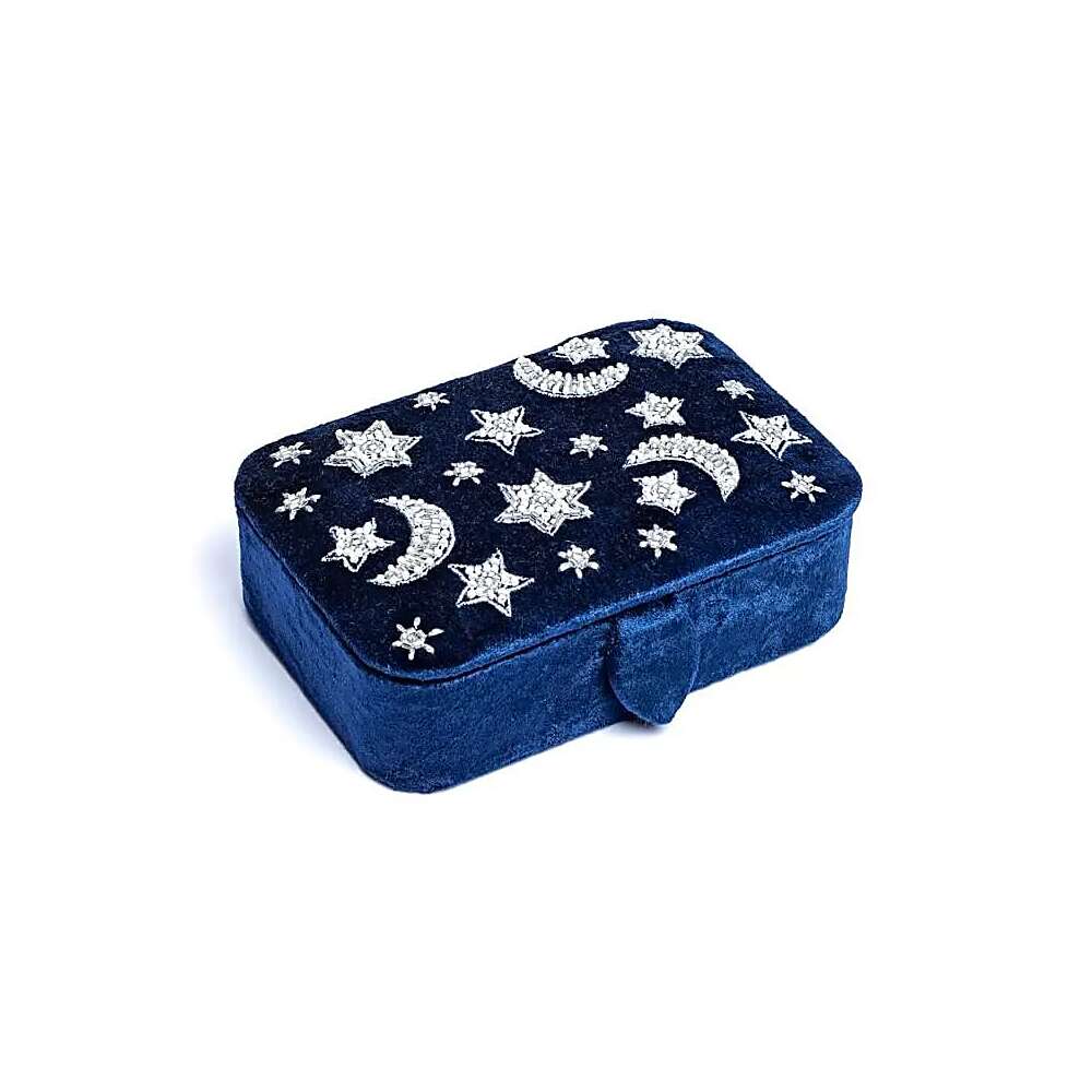 Smycken/Tarotskrin sammet mörkblå med måne och stjärnor, 11x15,5x5 cm