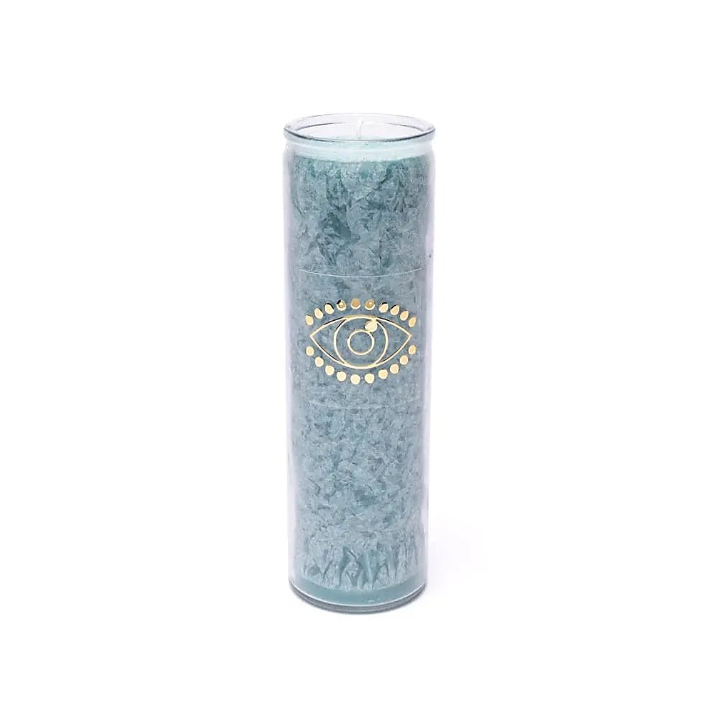 Stearinljus försynens öga akvamarin oparfymerad, 21x6,5 cm