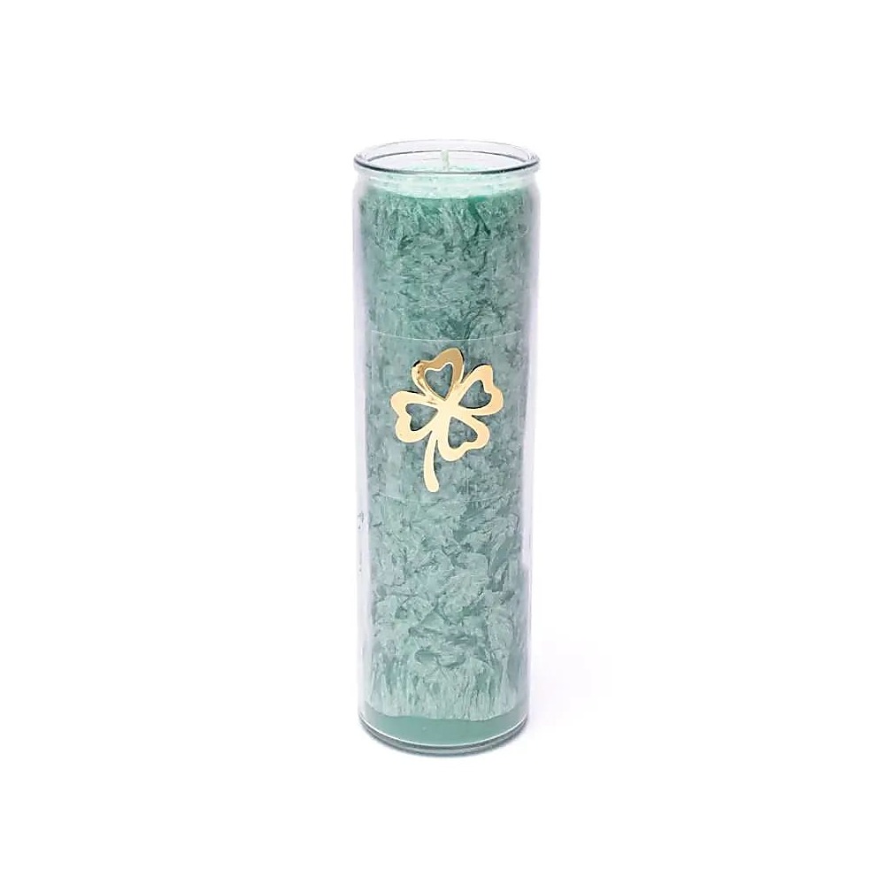 Stearinljus fyrklöver grön oparfymerad, 21×6,5 cm
