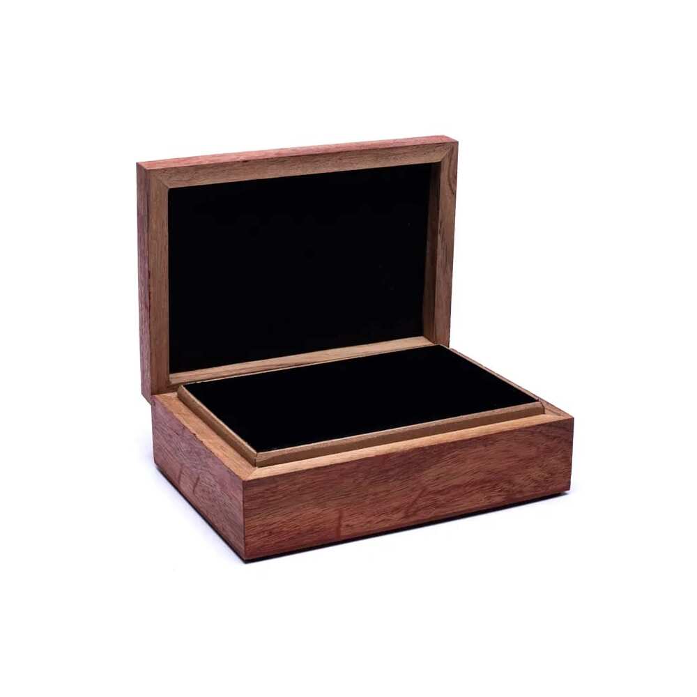 Tarotskrin med graverad dekoration och foder av livets blomma.